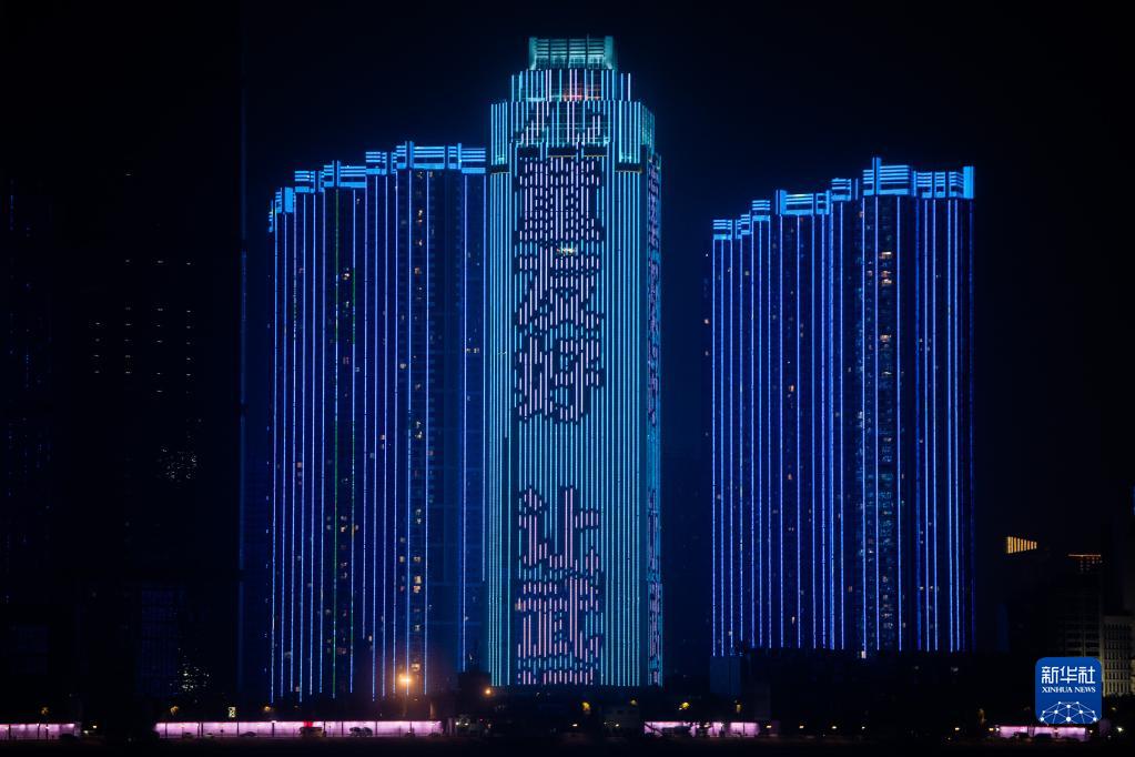 11月20日,湖北武汉世纪中心为世界儿童日亮灯。