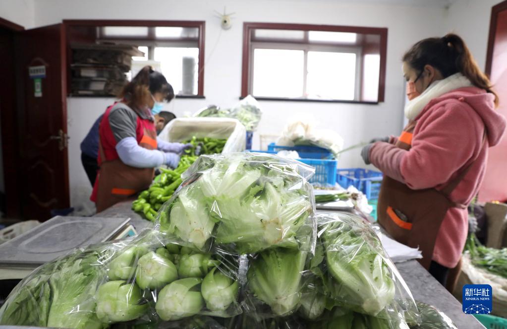 11月21日,在井陉县测鱼镇朱会村的大棚内,农户在打包蔬菜。