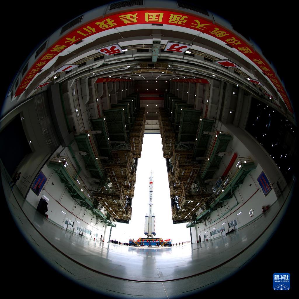 11月21日,神舟十五号载人飞船与长征二号F遥十五运载火箭组合体准备转往发射区。