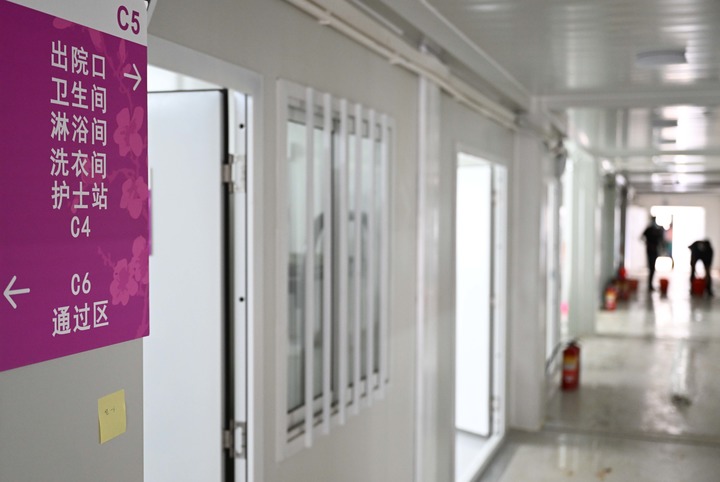 这是广州黄埔区中新知识城方舱医院内部的标识牌(11月24日摄)。新华社记者 邓华 摄