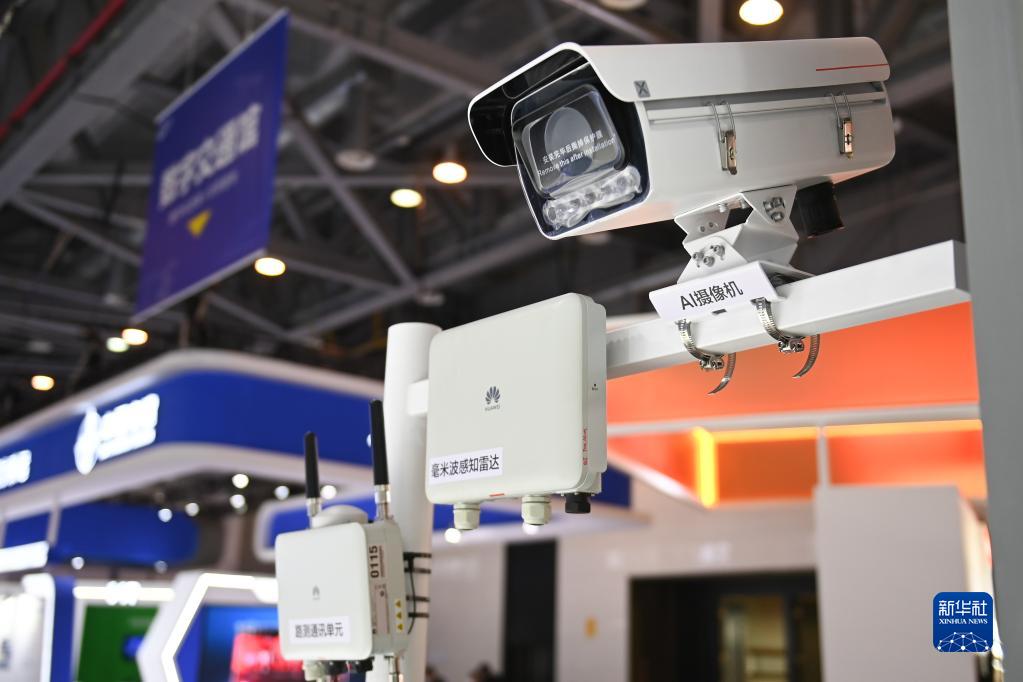 12月19日在华为公司展区拍摄的新型AI超微光电警卡口摄像机。据了解,该产品能高度还原车辆色彩,去除挡风玻璃彩色条纹,车内细节清晰呈现,帮助交警部门准确执法。