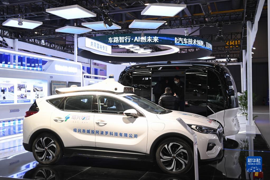 12月19日,观众在百度公司展区观摩无人驾驶应用场景。
