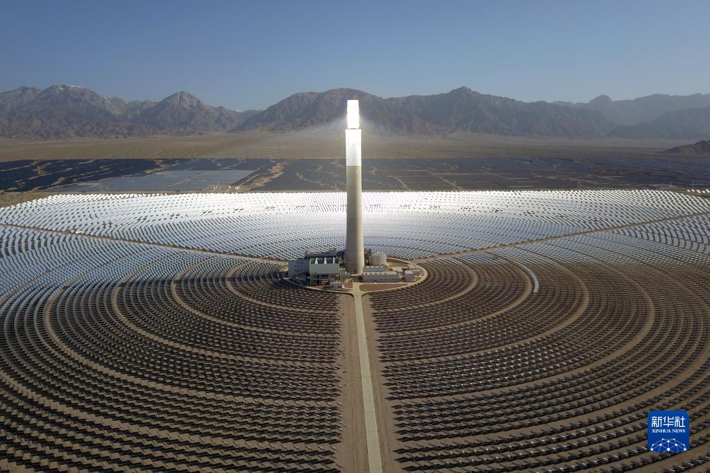 这是在青海海西蒙古族藏族自治州德令哈市光伏(光热)产业园拍摄的青海中控德令哈50兆瓦光热电站(2022年6月8日摄,无人机照片)。