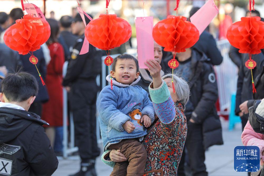 1月31日,湖南省衡阳市衡阳县在明翰广场开展猜灯谜活动,吸引众多市民参与。新华社发(刘欣荣摄)