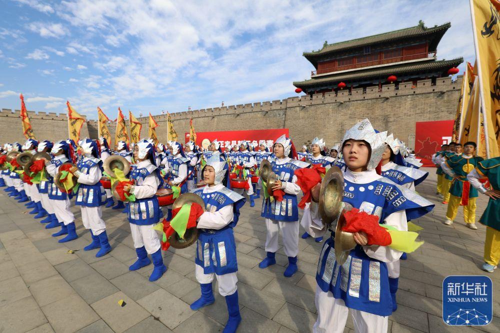 1月31日,在河北省石家庄市正定古城瓮城内,正定东关欢乐战鼓队进行战鼓表演。新华社发(张晓峰摄)