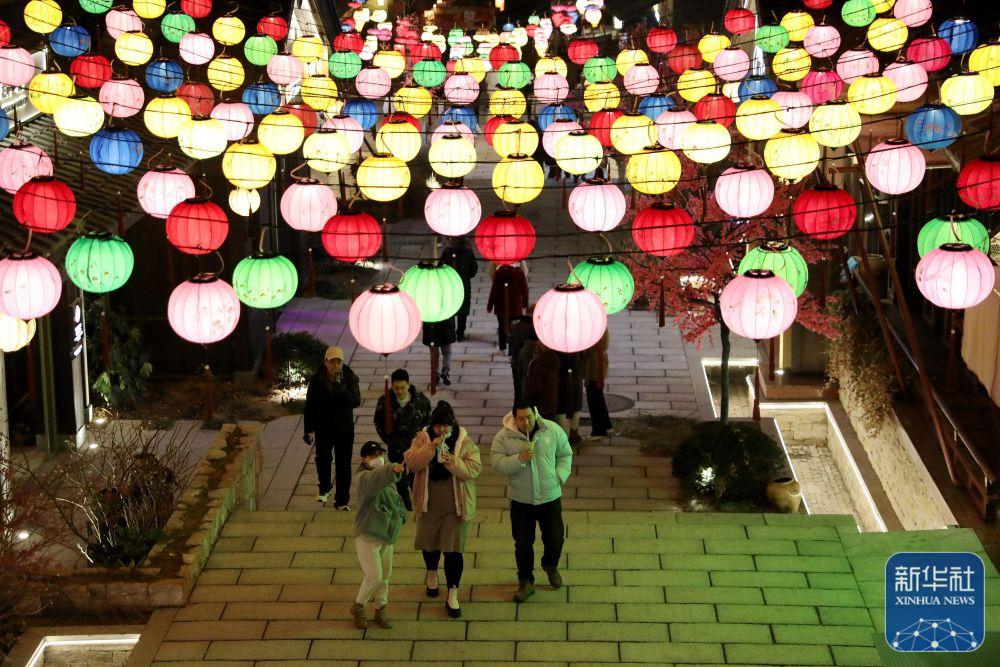 1月30日,游客在山东省青岛西海岸新区阿朵花屿景区观赏花灯。新华社发(王培珂摄)