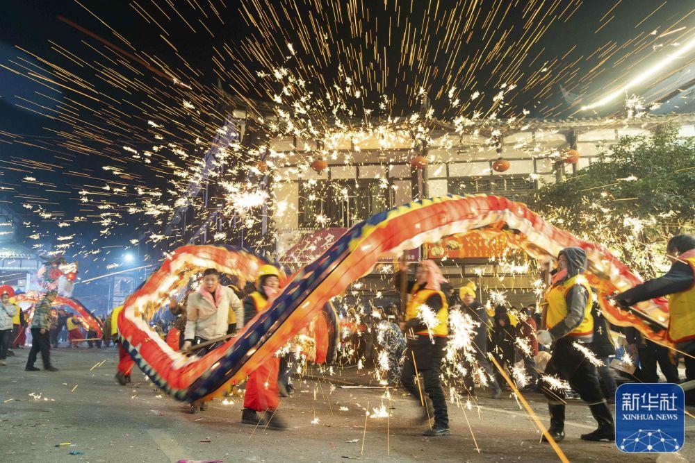 1月30日,人们在贵州省毕节市大方县六龙古镇舞龙。
