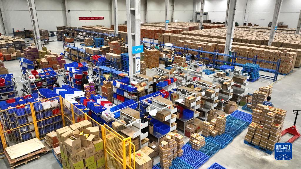 3月19日,在柳州市柳江区新兴工业园一家物流企业,工人在仓库里分拣物流快件。