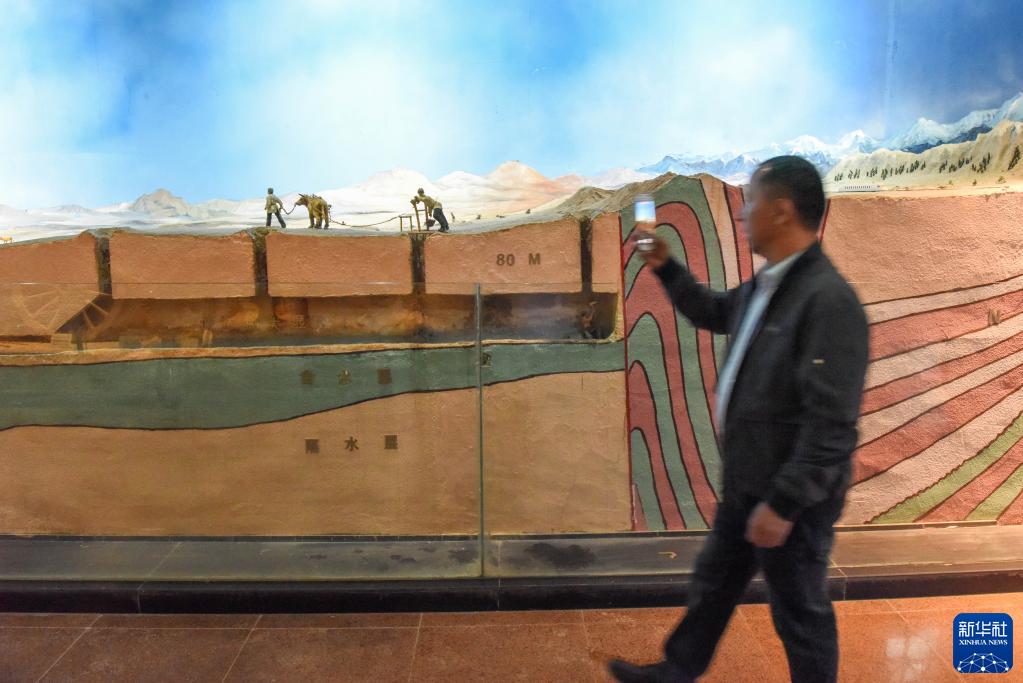 在新疆吐鲁番坎儿井乐园,游客在参观坎儿井模型(3月11日摄)。