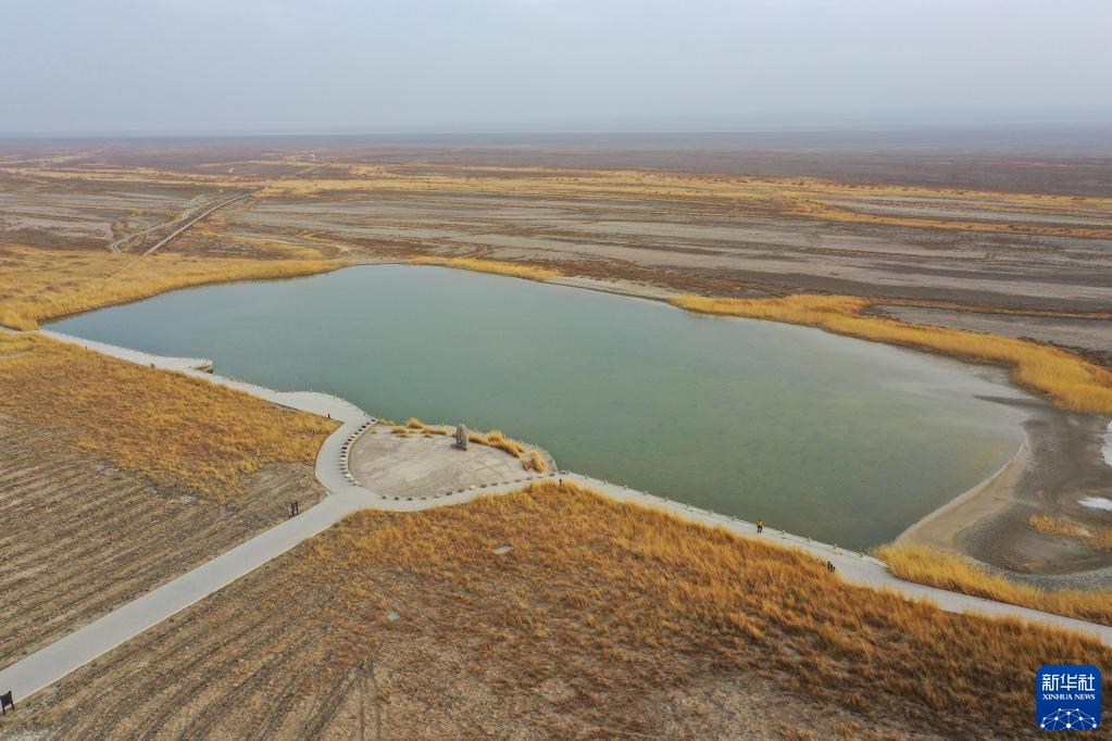 这是在新疆吐鲁番市高昌区拍摄的艾丁湖(3月7日摄)。冬季不需要灌溉时,坎儿井的水用于生态补水,汇集到艾丁湖。
