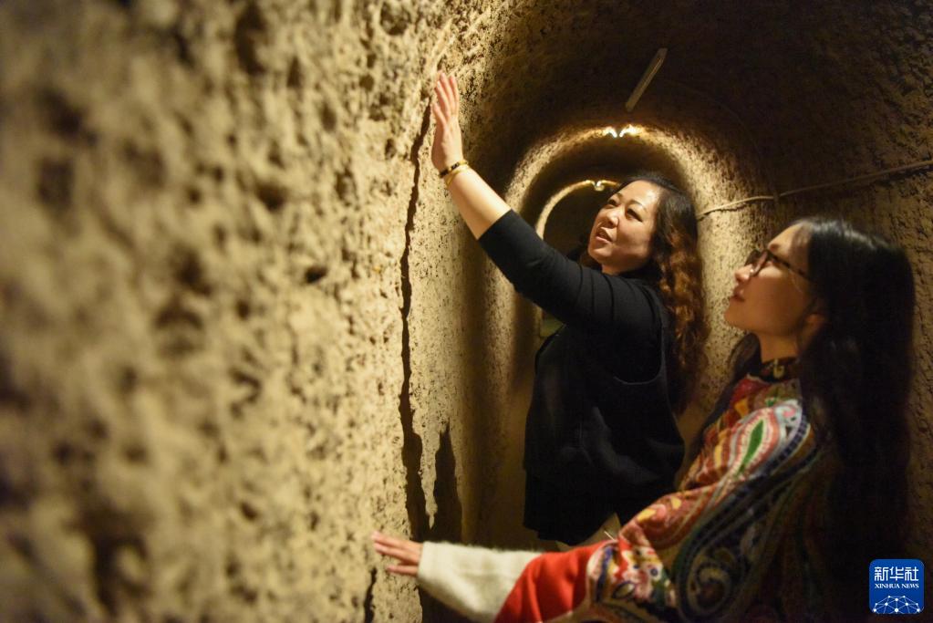 在新疆吐鲁番坎儿井乐园,游客在参观坎儿井(3月11日摄)。