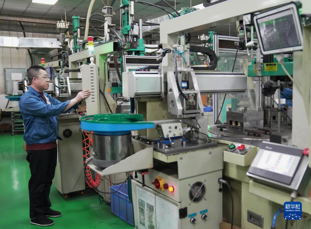 4月9日,工人在河北省青龙满族自治县青龙镇逃军山村一家电子产品企业的生产车间工作。