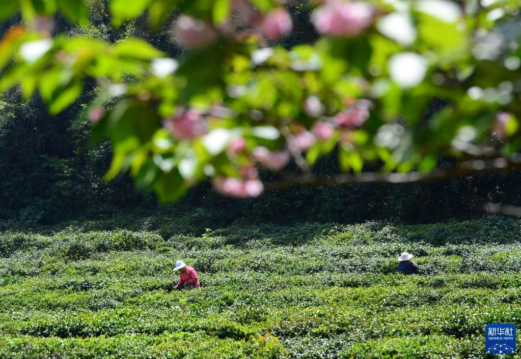 4月17日,采茶工在江苏省无锡市滨湖区雪浪街道一茶场采茶。