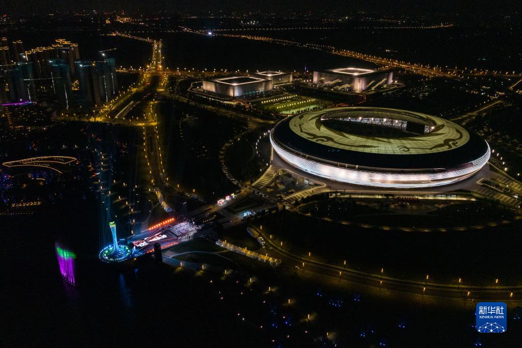 这是4月19日拍摄的第31届世界大学生夏季运动会开幕式主体育场及主火炬(无人机照片)。