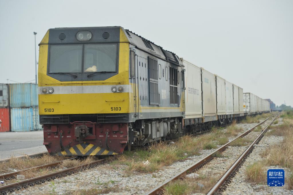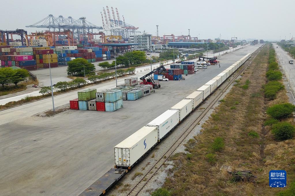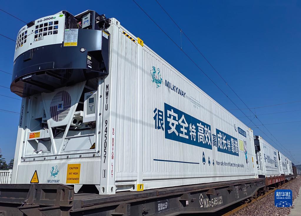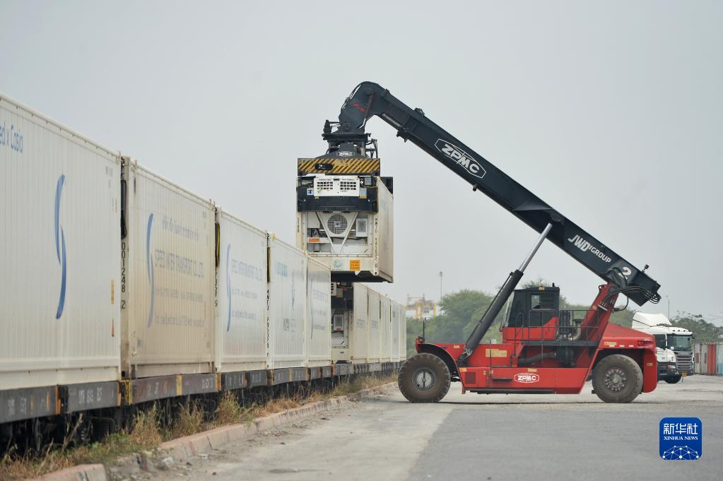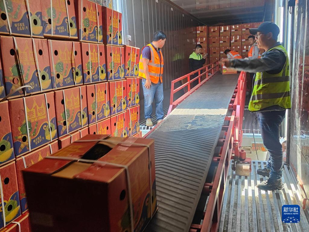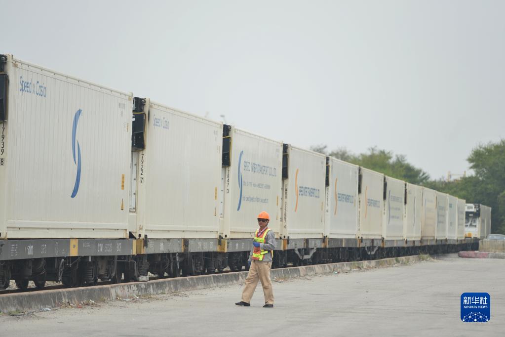 4月19日,装载着来自泰国等地热带水果的冷链集装箱到达昆明东站。新华社发(秦文璐 摄)