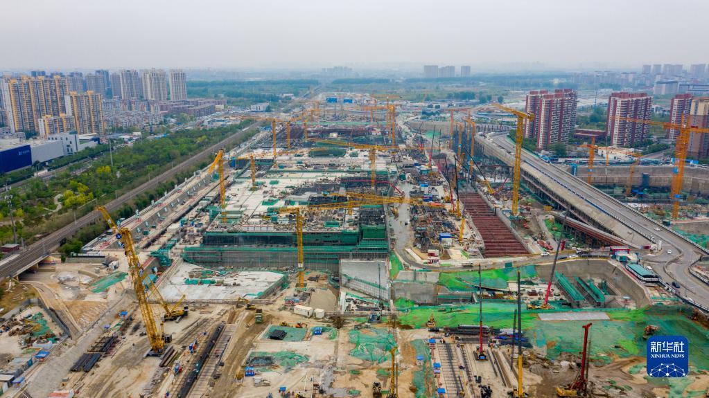 这是在北京市通州区拍摄的建设中的北京城市副中心站综合交通枢纽(2023年4月23日摄,无人机照片)。
