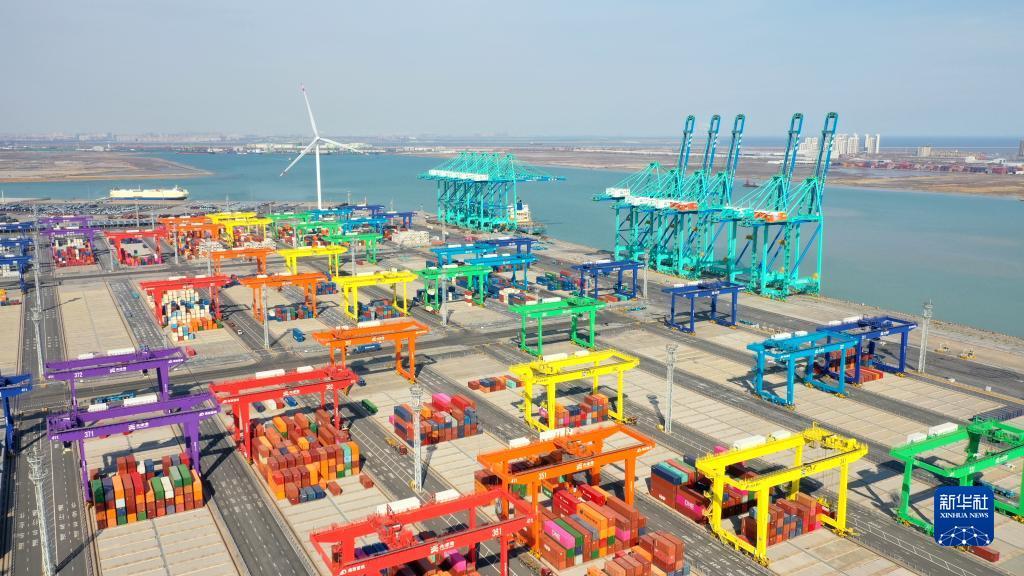 这是天津港全物联网集装箱码头(2023年2月21日摄,无人机照片)。