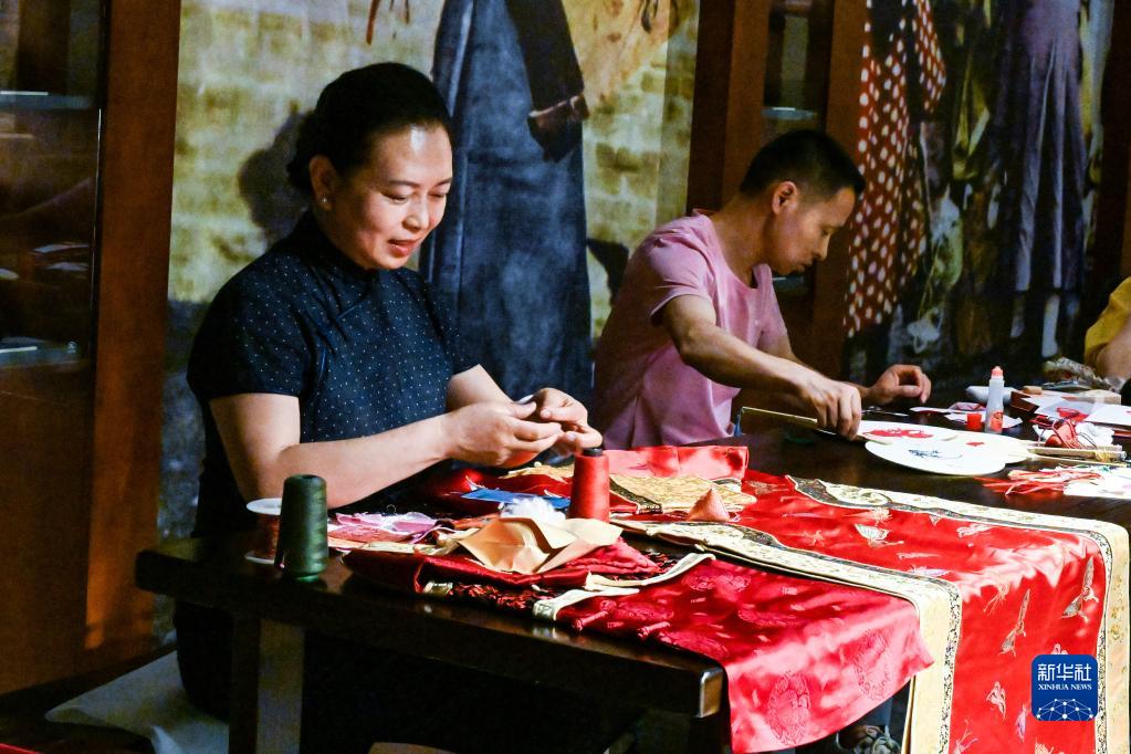 55岁的陈玉秋是国家级非物质文化遗产满族旗袍制作技艺代表性传承人。端午节前,为了让更多人了解端午节传统习俗和满族旗袍技艺,陈玉秋来到吉林省吉林市博物馆,教人们缝制香囊,并将手工制作的香囊赠送给市民。