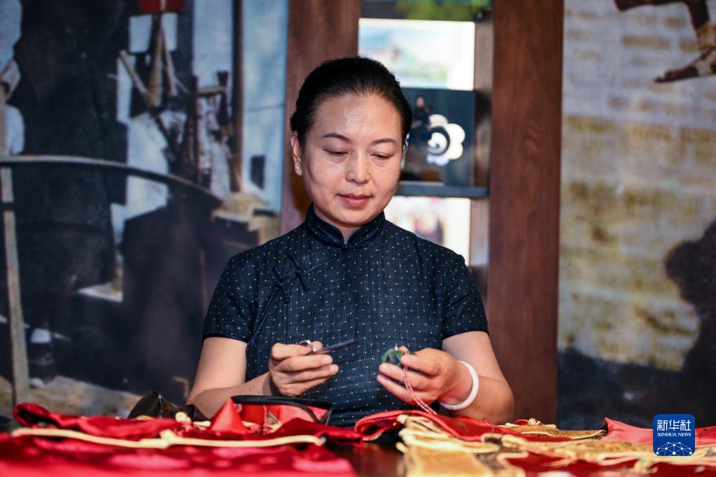 55岁的陈玉秋是国家级非物质文化遗产满族旗袍制作技艺代表性传承人。端午节前,为了让更多人了解端午节传统习俗和满族旗袍技艺,陈玉秋来到吉林省吉林市博物馆,教人们缝制香囊,并将手工制作的香囊赠送给市民。