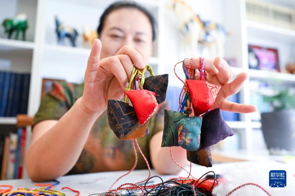 55岁的陈玉秋是国家级非物质文化遗产满族旗袍制作技艺代表性传承人。端午节前,为了让更多人了解端午节传统习俗和满族旗袍技艺,陈玉秋来到吉林省吉林市博物馆,教人们缝制香囊,并将手工制作的香囊赠送给市民。