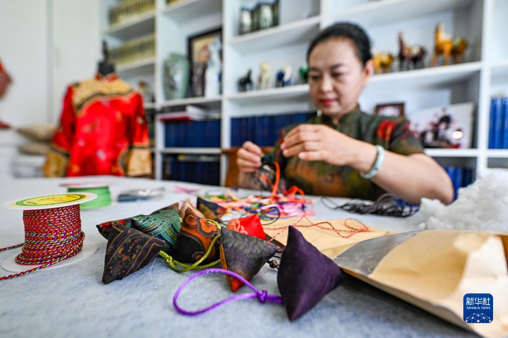55岁的陈玉秋是国家级非物质文化遗产满族旗袍制作技艺代表性传承人。端午节前,为了让更多人了解端午节传统习俗和满族旗袍技艺,陈玉秋来到吉林省吉林市博物馆,教人们缝制香囊,并将手工制作的香囊赠送给市民。