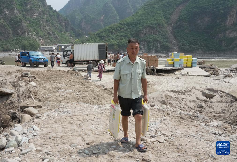 近日,河北省保定市涞水县出现强降雨,部分村庄交通、通讯等受阻。强降雨过后,当地在积极组织力量抢修重建的同时,及时将政府采购和社会各界捐赠的粮油、蔬菜、饮用水等物资送到群众家门口,以确保山区农村受灾群众基本生活需求。