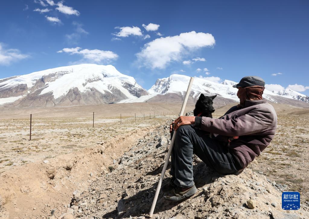 在“冰川之父”慕士塔格峰脚下,新疆塔什库尔干塔吉克自治县塔合曼乡境内的一片天然草场吸引周边乡村的牧羊人在此放牧。进入秋季以来,草场渐渐泛黄,屹立于远处的慕士塔格峰和公格尔九别峰在蓝天白云的映衬下格外壮美,一幅宁静悠远的牧羊图引人入胜。