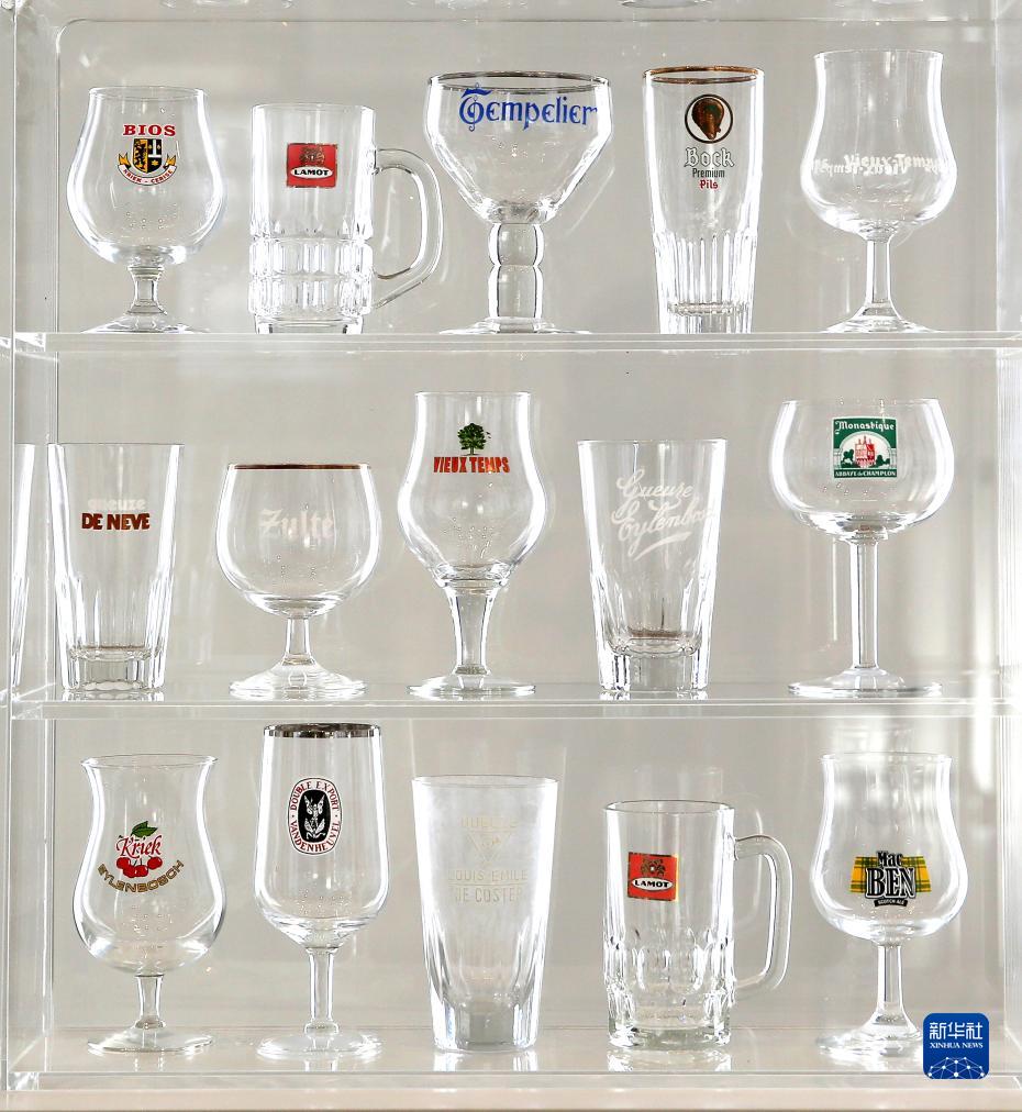 这是9月9日在比利时布鲁塞尔的啤酒世界拍摄的各式啤酒杯。