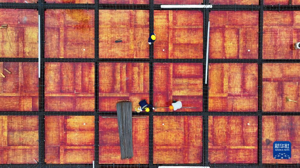 10月7日,工人在江苏洪泽经济开发区一项目工地忙碌。