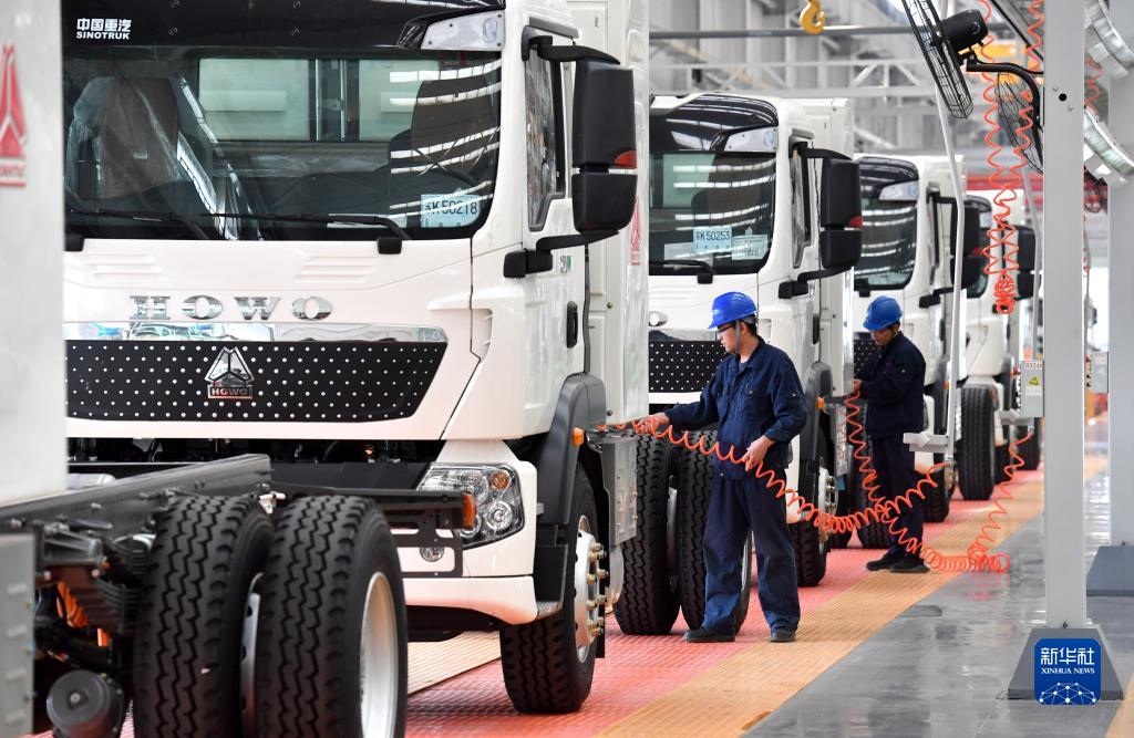 10月7日,工人在河北省石家庄市机械装备制造园区石煤机公司组装车间工作。