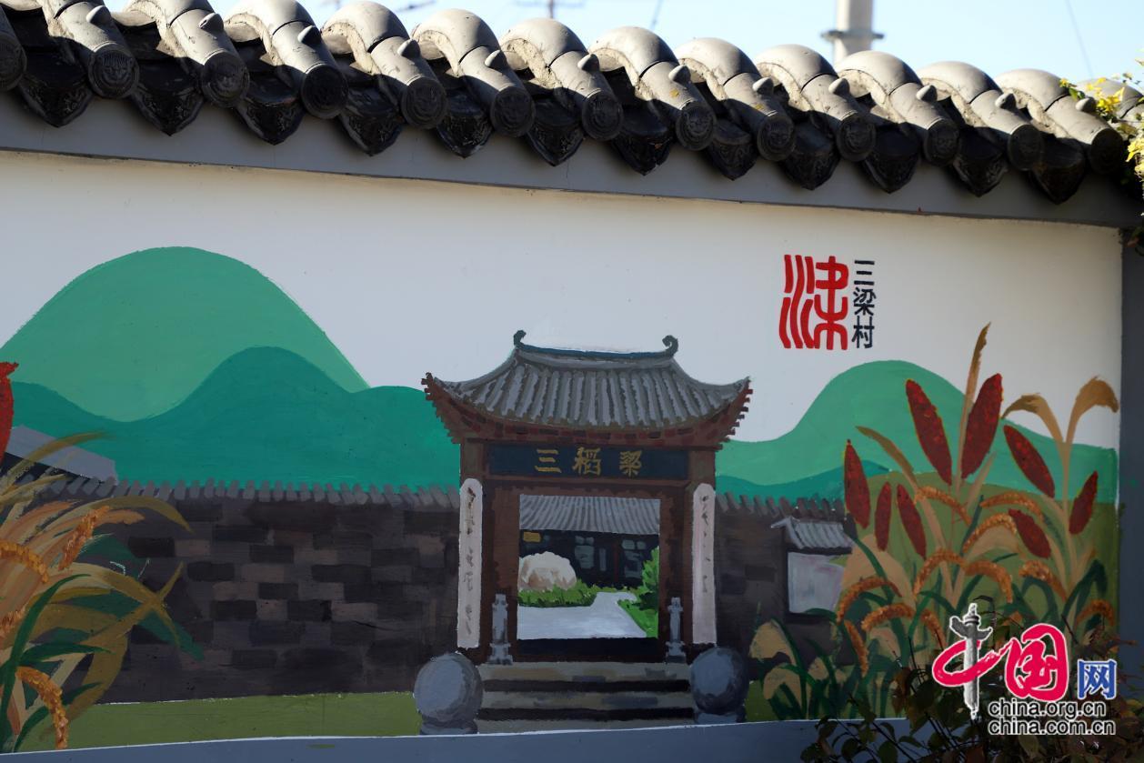 墙体彩绘项目是吉林工程技术师范学院与三梁村打造“吉乡农创园”文创工作重要一环,由该校艺术与设计学院具体实施。经过前期调研与现场踏查,艺术与设计学院制定工作方案,通过严格筛选,于9月30日选派3名教师、18名学生,由副院长孙嘉伟带队赴三梁村开展工作。项目师生团队围绕“五大振兴”和“美丽乡村”建设,在村内1300余米的墙体上,精心设计、勾勒线条、填涂色彩,将三梁村的地域文化和特色产业以村民喜闻乐见的形式展现出来。整个彩绘过程历时16天,师生团队克服种种困难,加班加点赶工,最后冲刺阶段连续挑灯夜战,共绘制116幅彩绘作品,绘画面积达到1000余平方米。一幅幅生动的彩绘作品,扮靓了乡村美景,传播了文明新风尚,让村民切身感受到乡村振兴的丰硕成果。村民们纷纷竖起大姆指,夸赞彩绘文化墙太美了,让他们对美好生活的追求信心更足更有干劲了。