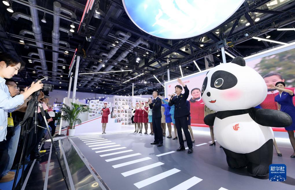 11月3日,来自中国国际航空公司的空乘人员在展台进行制服秀表演。