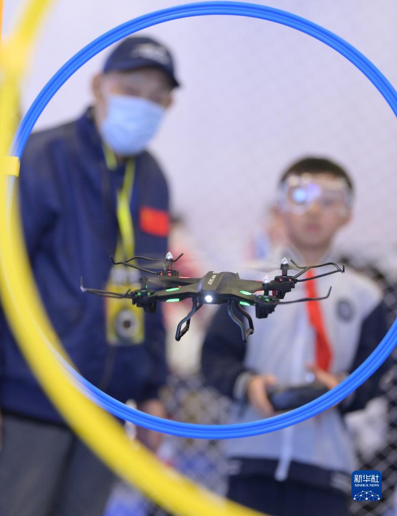11月3日,学生在展会上参与青少年航空预备人才海选评测时进行无人机实操。