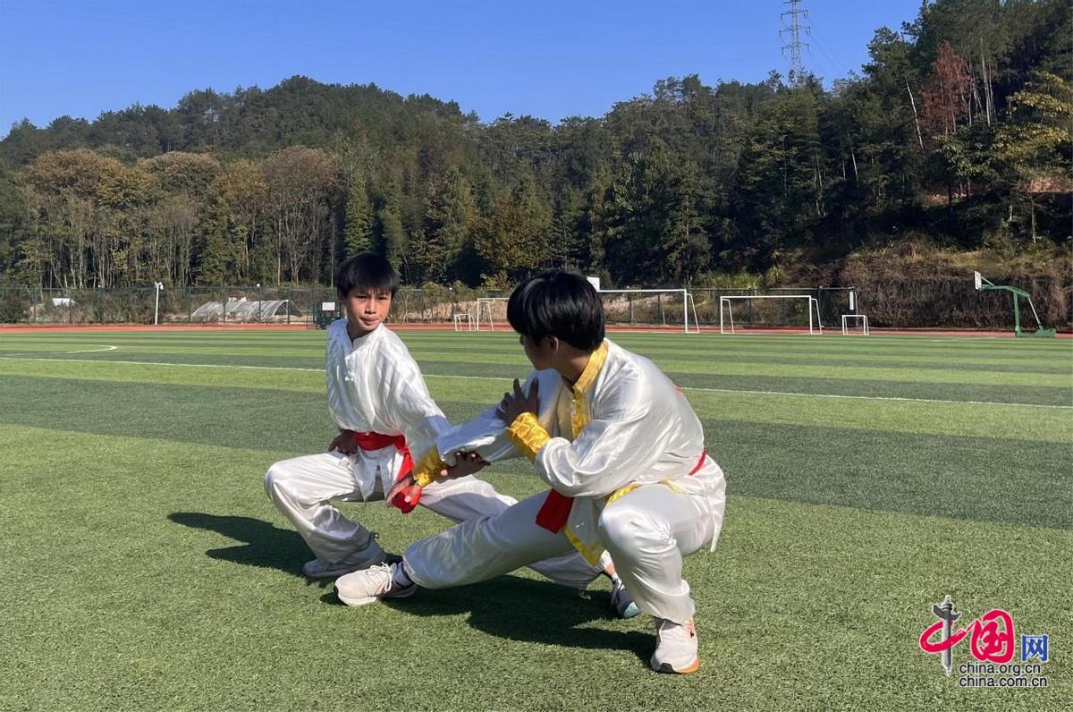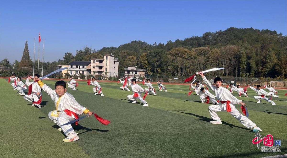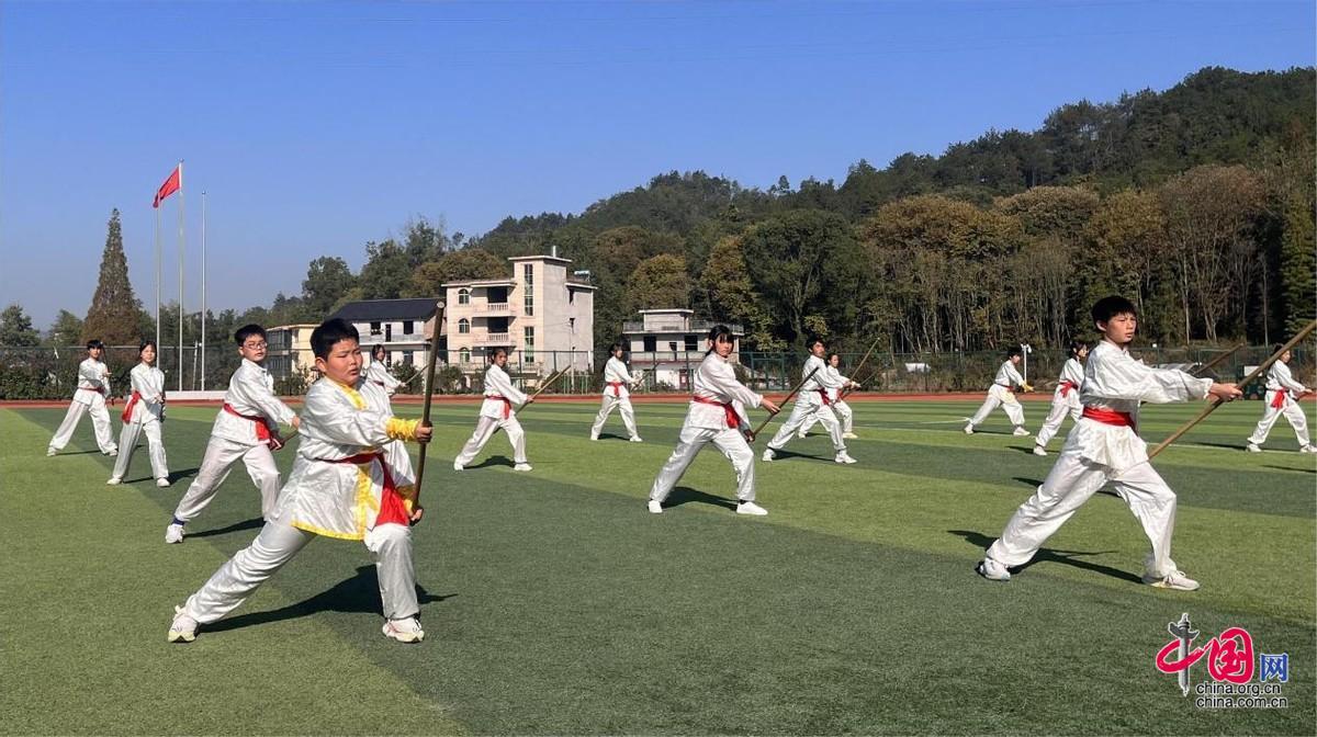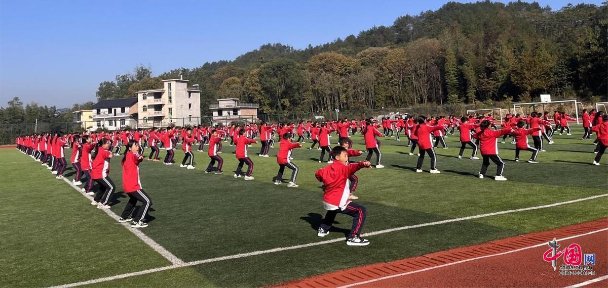 “一、二、三……”11月21日,在袁州区南庙中学的操场上,六百余名学生随着武术教练的口令,做出抱拳、马步、运肘、仰劈等武术动作,一招一式都极富韵律和力量,尽显非遗武术魅力。