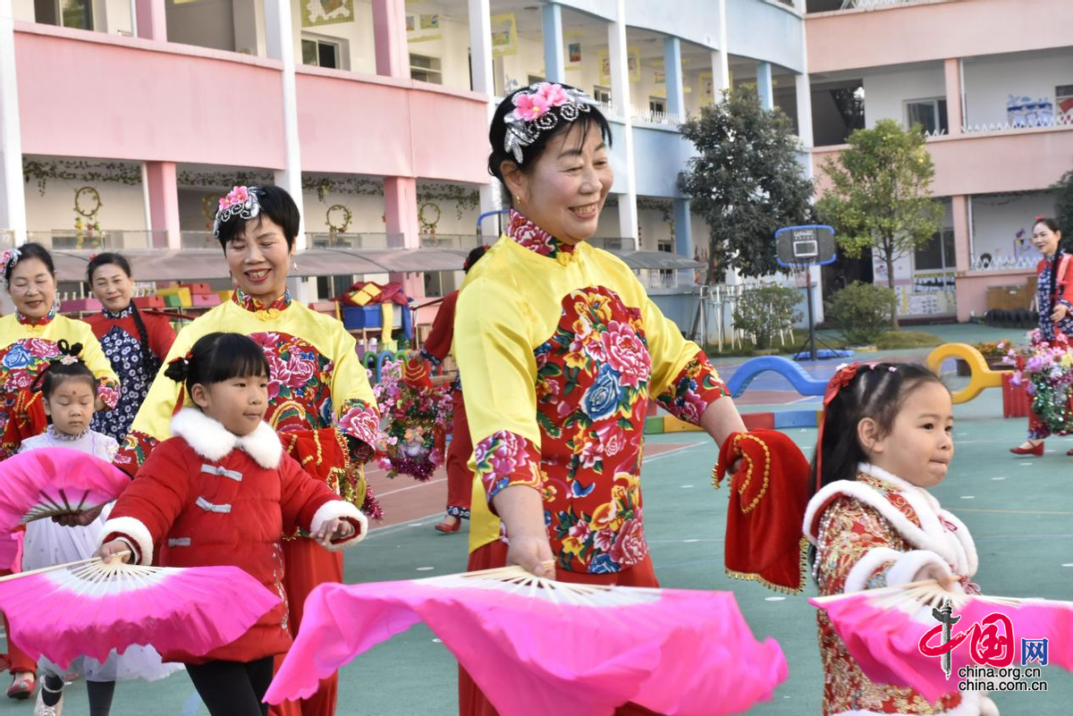 锣鼓一响,六女肩挑花篮施施然向前走去,两人手持蚌壳做开合状,采莲船一摇一晃……,11月22日,在上高县第五幼儿园,一场热闹的十样景表演正火热进行。孩子们欢呼雀跃,通过观看表演、与演员们互动、亲身参与等,零距离感受非遗独特魅力。