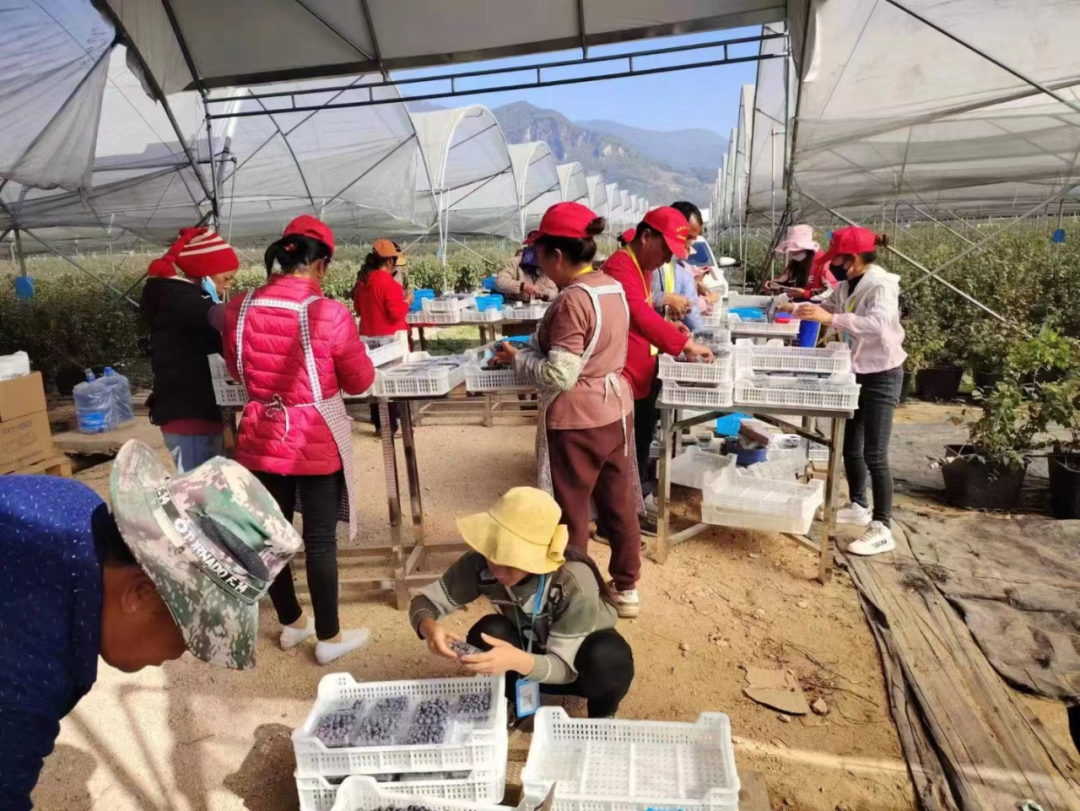 欧明光与妻子欧普琴现在西双版纳勐遮蓝莓基地务工,欧明光介绍,他2021年就跟随云南丰寅人力资源有限公司到这个基地采摘蓝莓,每年采摘6-7个月,月均收入6000余元。提到外出务工经历,欧明光说:“我很早就开始到处打工了,但是前些年踩过很多坑,东奔西走,没有真正赚到钱。刚开始县人社局开展招聘宣传,其实我也是抱着怀疑的心态,但是这两年,光是采摘蓝莓这个季节外出务工,我都赚到钱了,我打算年后继续干,趁这几年多苦点钱。”