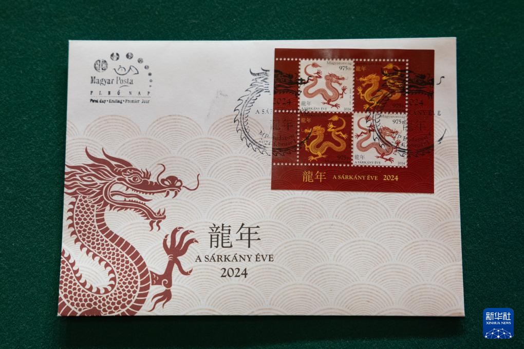 这是2月1日在匈牙利布达佩斯举行的中国农历龙年生肖邮票发行仪式上拍摄的中国农历龙年生肖邮票首日封。
