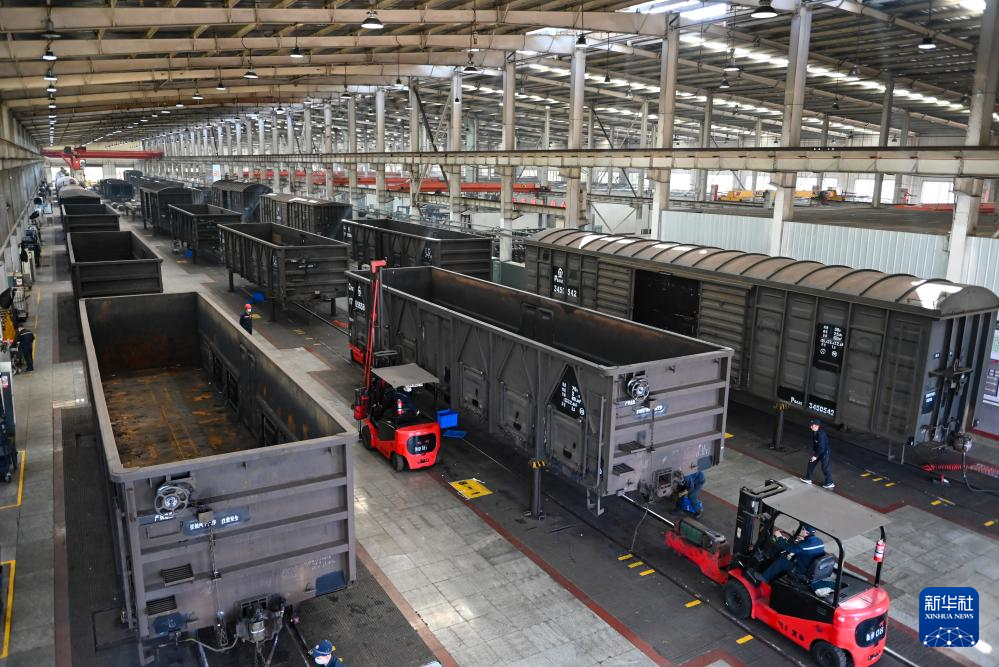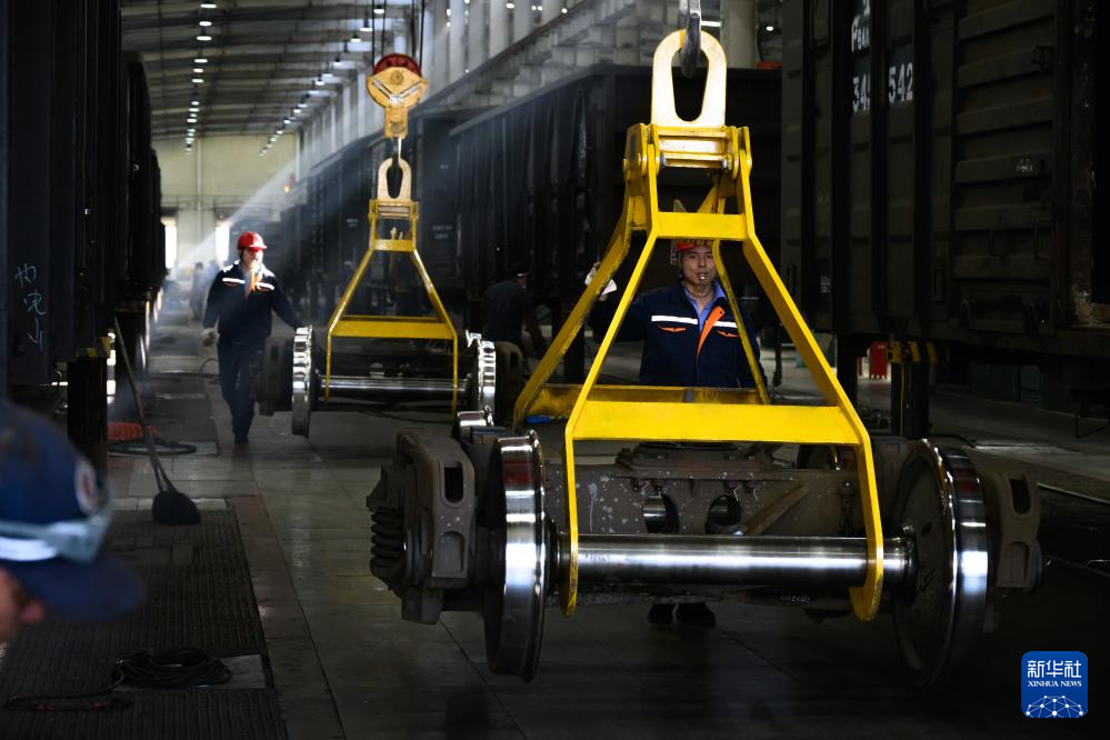 2月18日,在贵阳南车辆段检修车间,工作人员对5T车间发现的车辆故障进行维修。