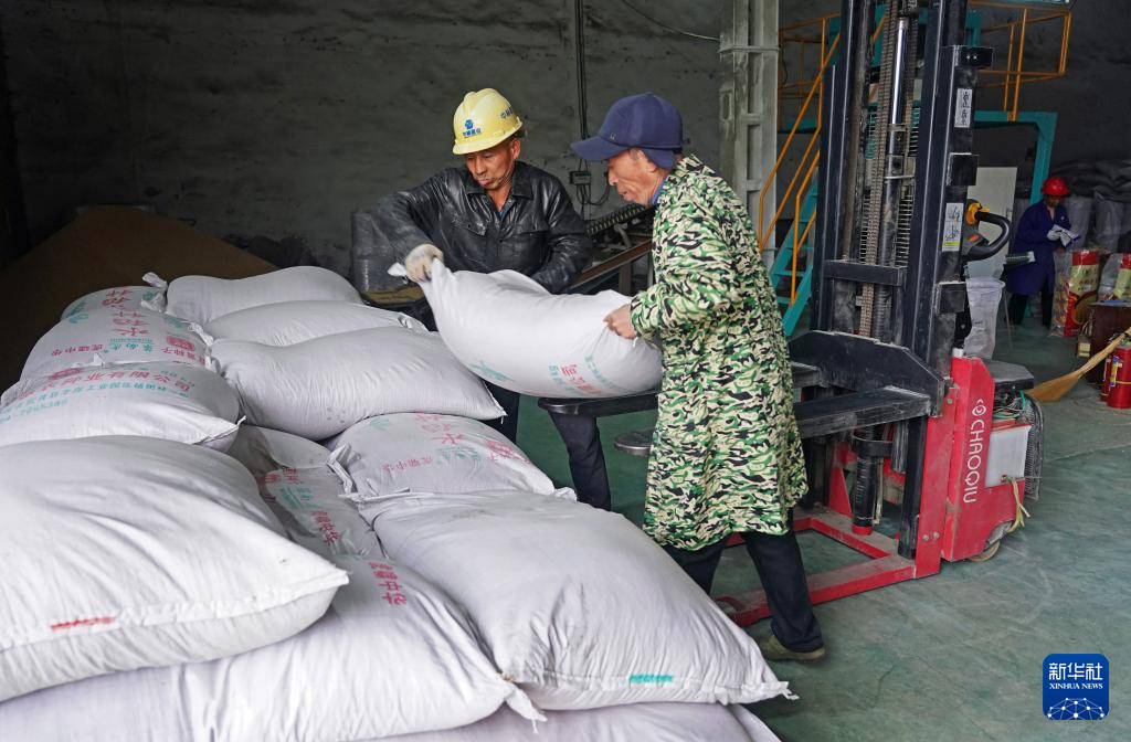 2月21日,在江西省宜黄县的一家种业公司车间,工人在搬运稻种。