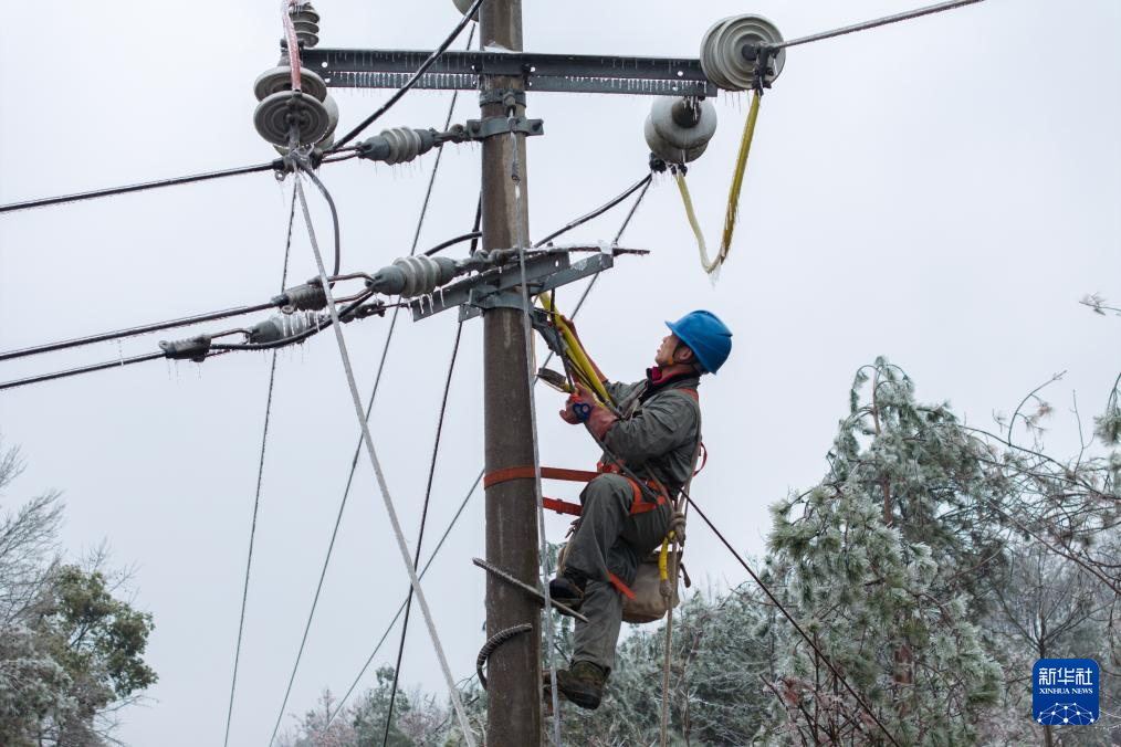 近日,湖北省迎来新一轮冰冻雨雪天气,电力设备出现不同程度覆冰。为保障输配电线路运行安全,国网浠水县供电公司工作人员对相关电力设备进行故障排查及抢修,全力保障群众安心用电。