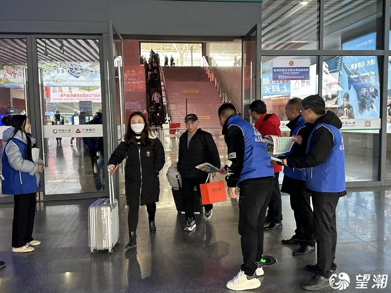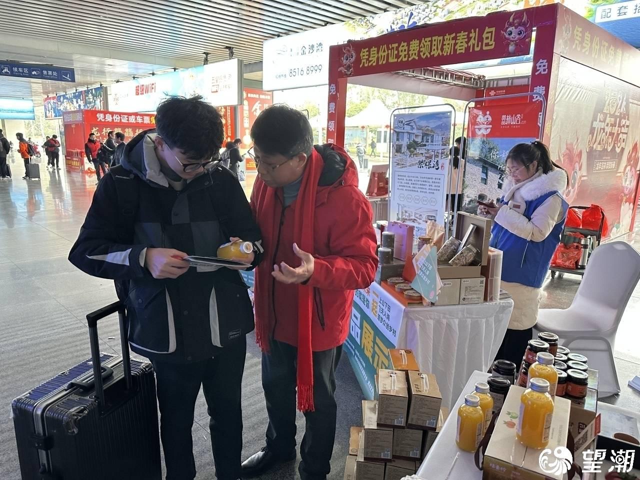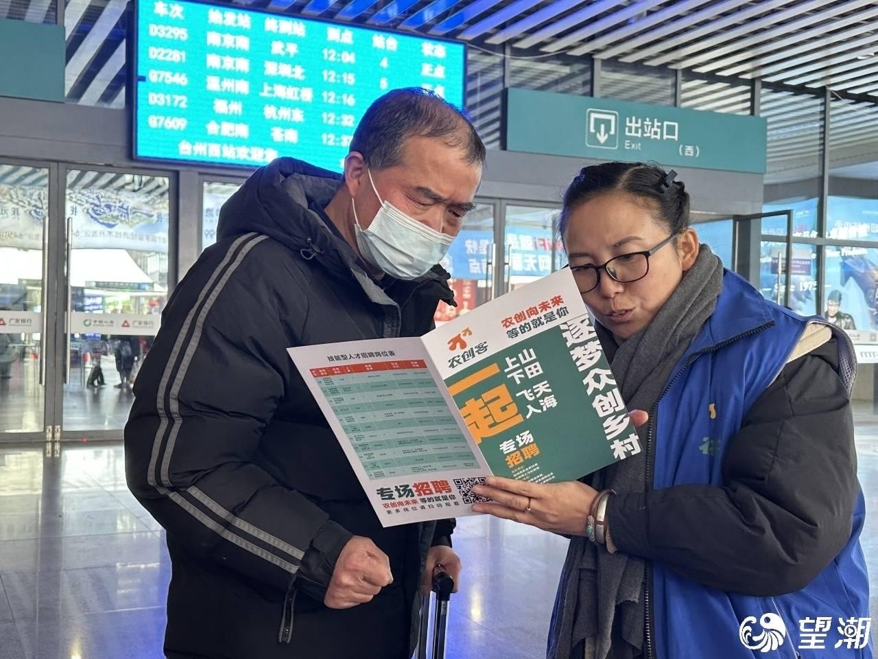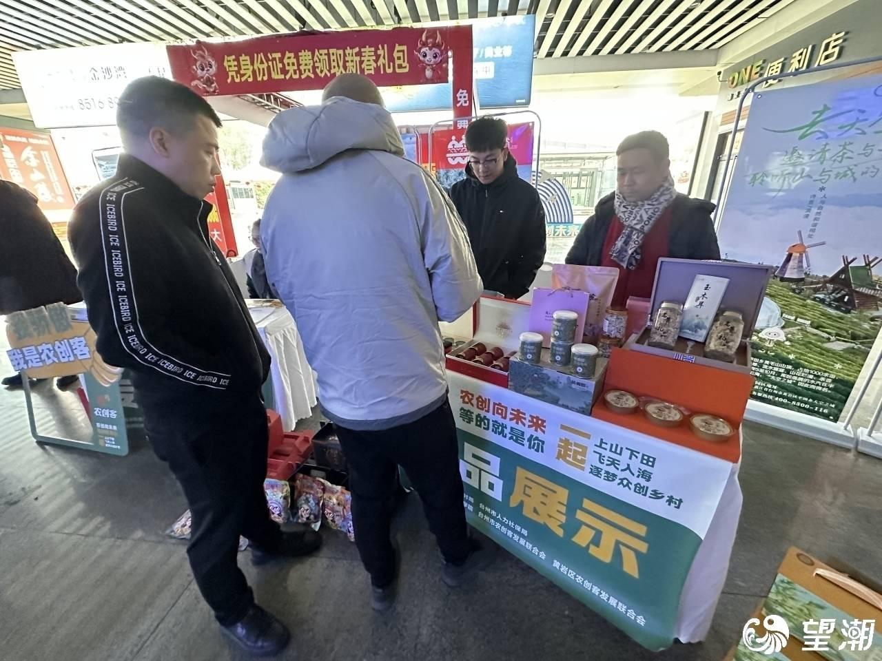 在台州西站旅客出站口,各农创客主体负责人主动出击,向一拨拨出站旅客推介自己的企业。