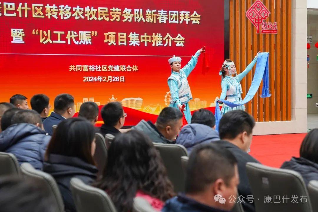 2月26日上午,乌兰牧骑队员们热情洋溢的表演拉开了康巴什区转移农牧民劳务队新春团拜会暨“以工代赈”项目集中推介会的序幕。随着住建局、农牧和水利局、文旅局、城市管理局、通惠集团等项目发包单位一一介绍了各自2024年“以工代赈”计划实施情况项目,一个个好项目就像一颗颗高纯度糖块,甜进了现场80余家劳务队负责人的心窝里。