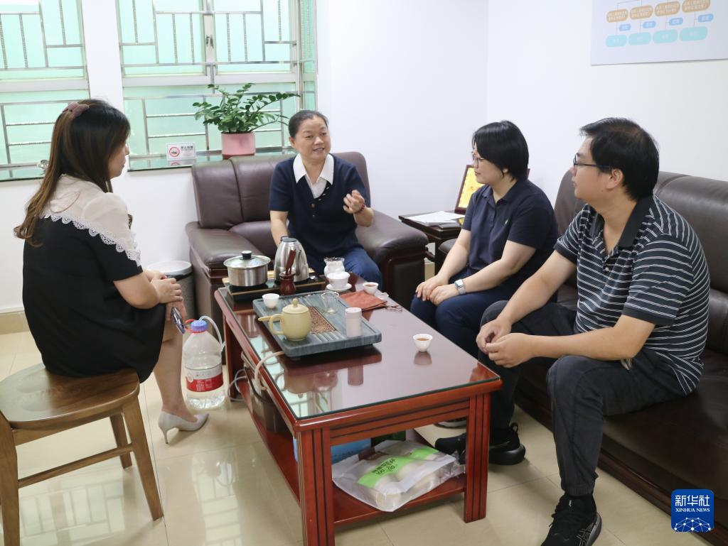陈淑贤(右二)在深圳市盐田区梧桐社区调研时与社区工作人员交流(2023年7月24日摄)。