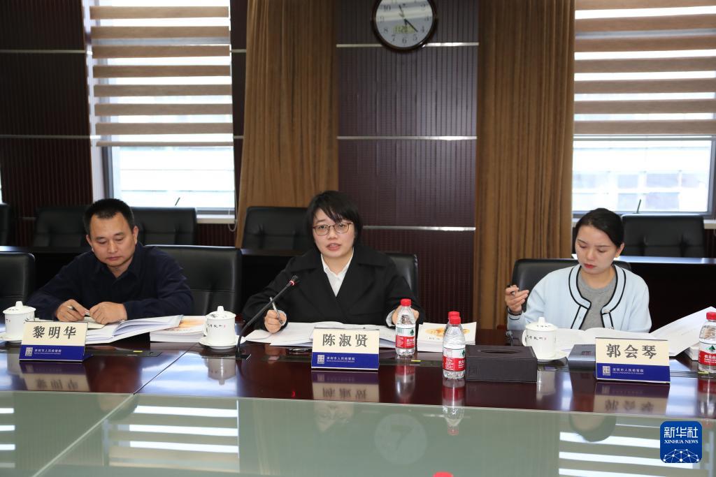 陈淑贤(中)与其他全国人大代表一同在深圳市检察院调研(2023年11月20日摄)。