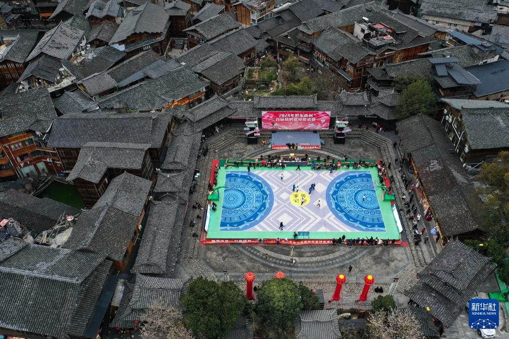 这是3月8日拍摄的2024年黔东南州首届姑妈篮球邀请赛赛场(无人机照片)。