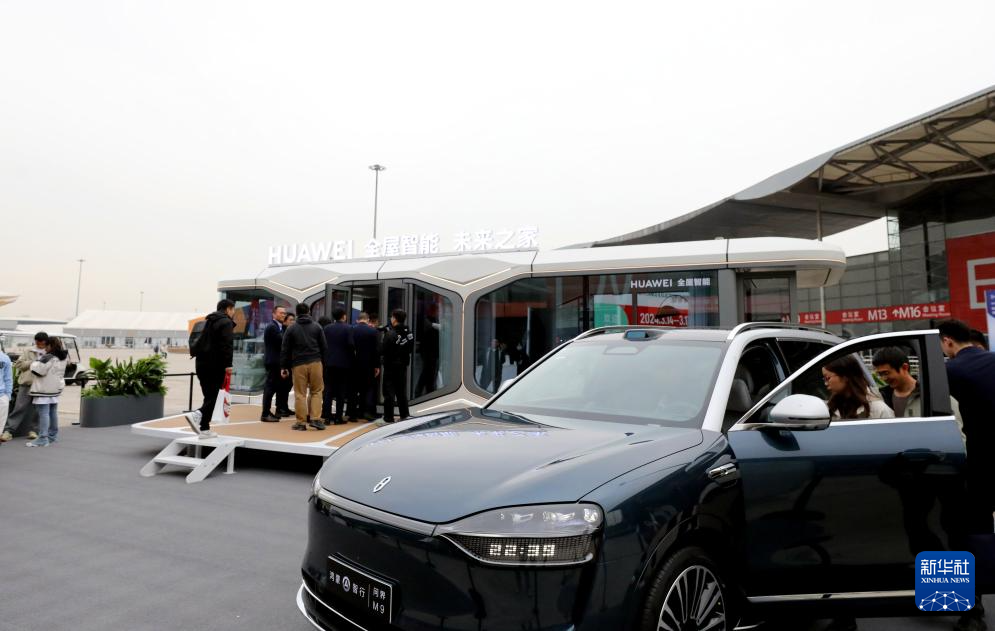 这是华为公司设在博览会露天展区的智能家庭实景展示区域(3月14日摄)。