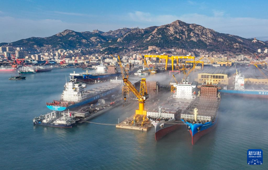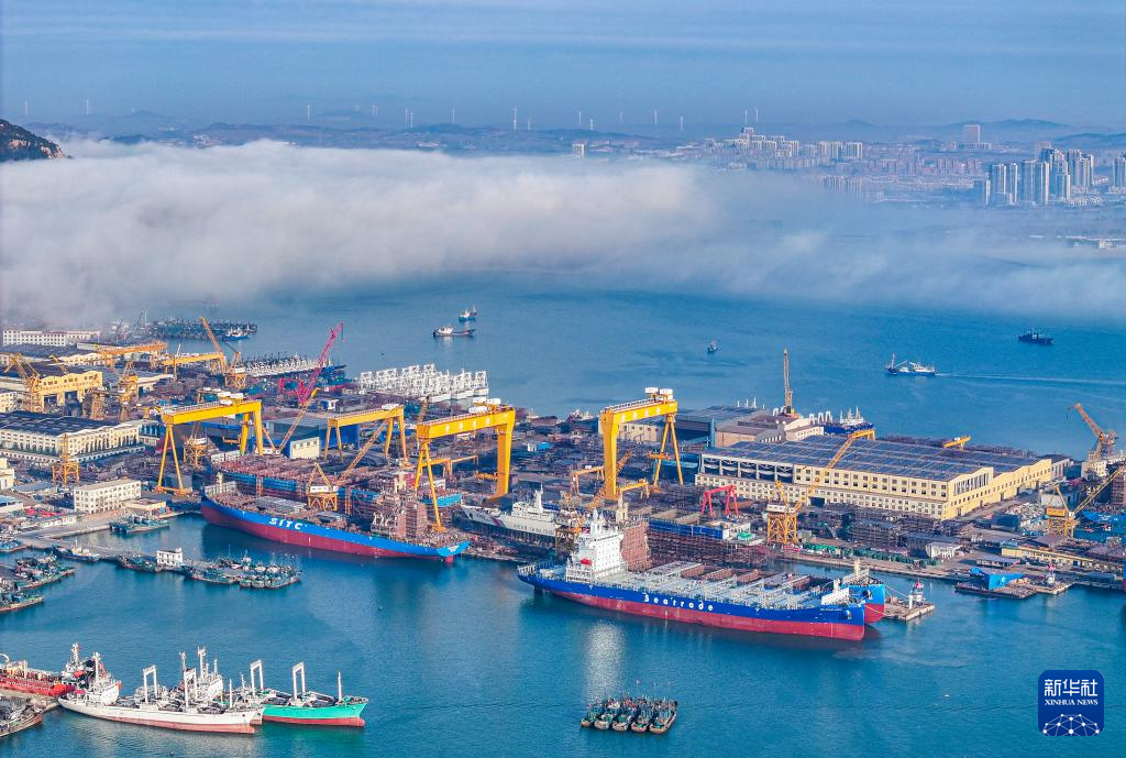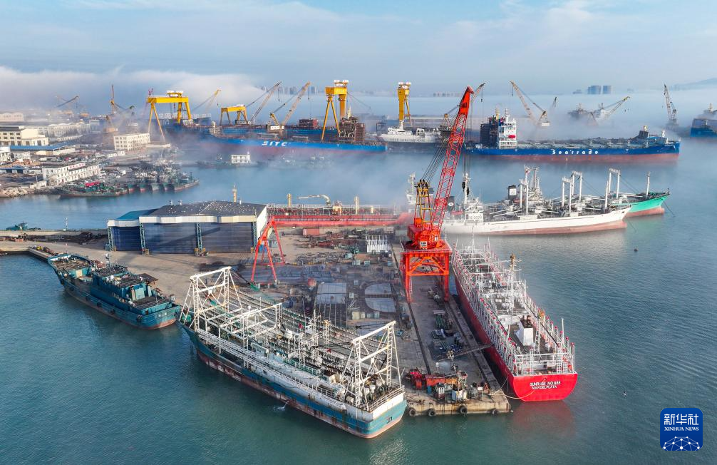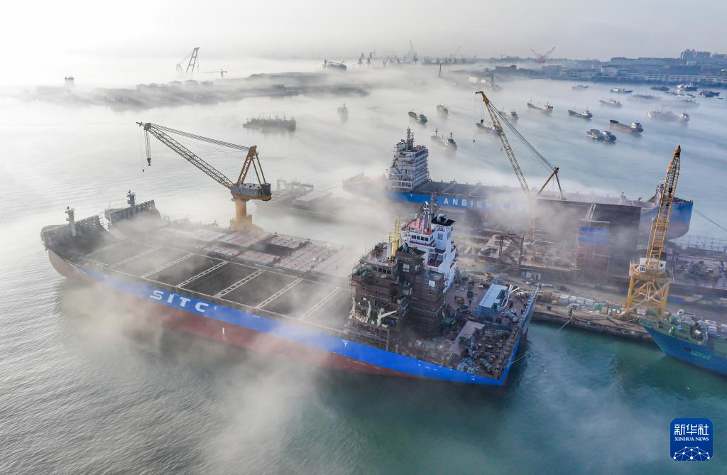 今年以来,山东省荣成市石岛管理区修造船基地的造船企业开足马力,抢赶工期,船坞内呈现出一派繁忙的景象。