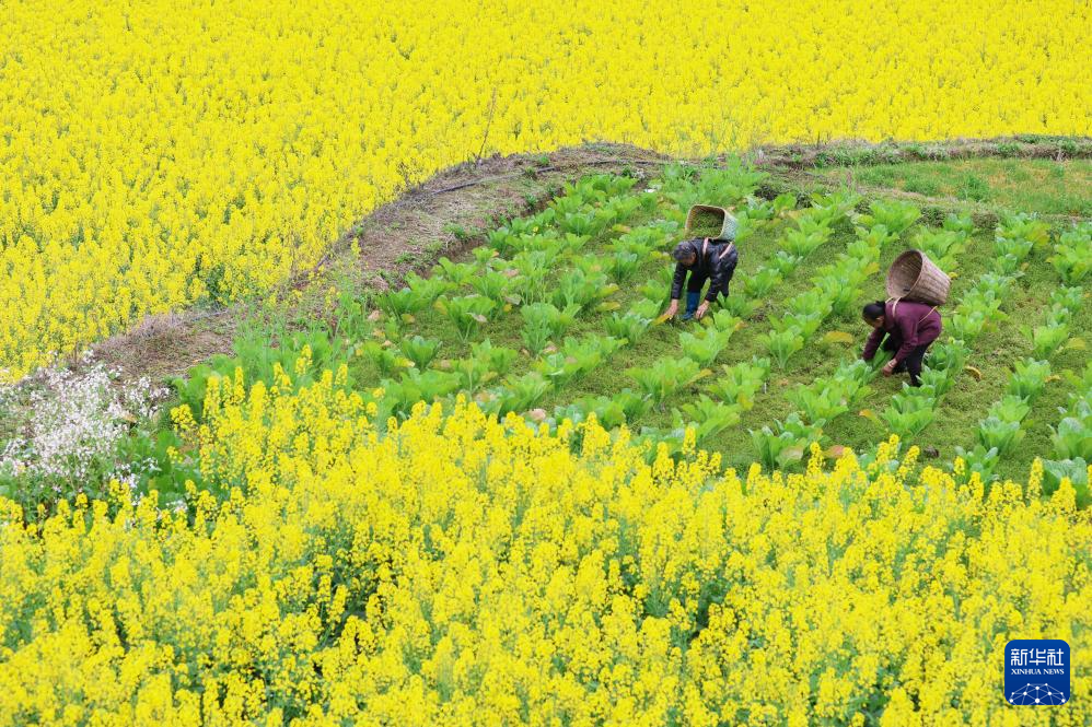 3月17日,在贵州省黔东南苗族侗族自治州岑巩县注溪镇周坪村,村民在田间劳作。