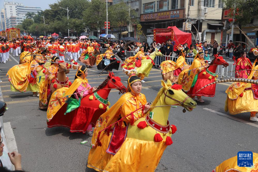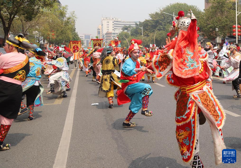3月17日,布马舞队在汕头市潮阳区“第十一届潮阳双忠文化节”巡游中表演。