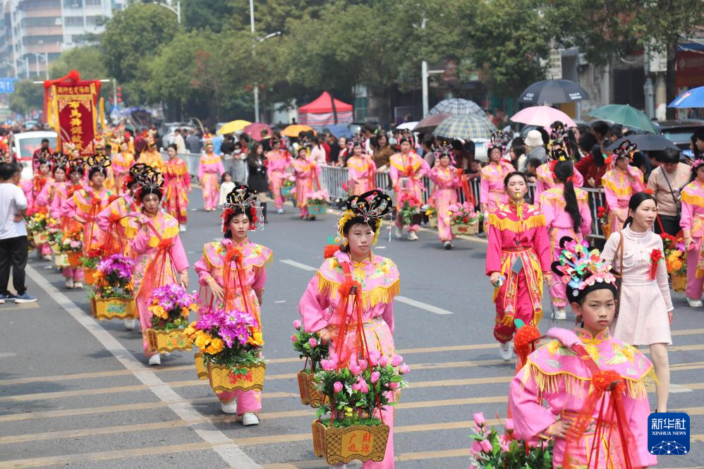 当日,“第十一届潮阳双忠文化节”在广东省汕头市潮阳区举行。现场汇集了英歌舞、布马舞、秧歌舞等百余支潮汕民俗文化特色巡游队伍,吸引了众多市民观看。